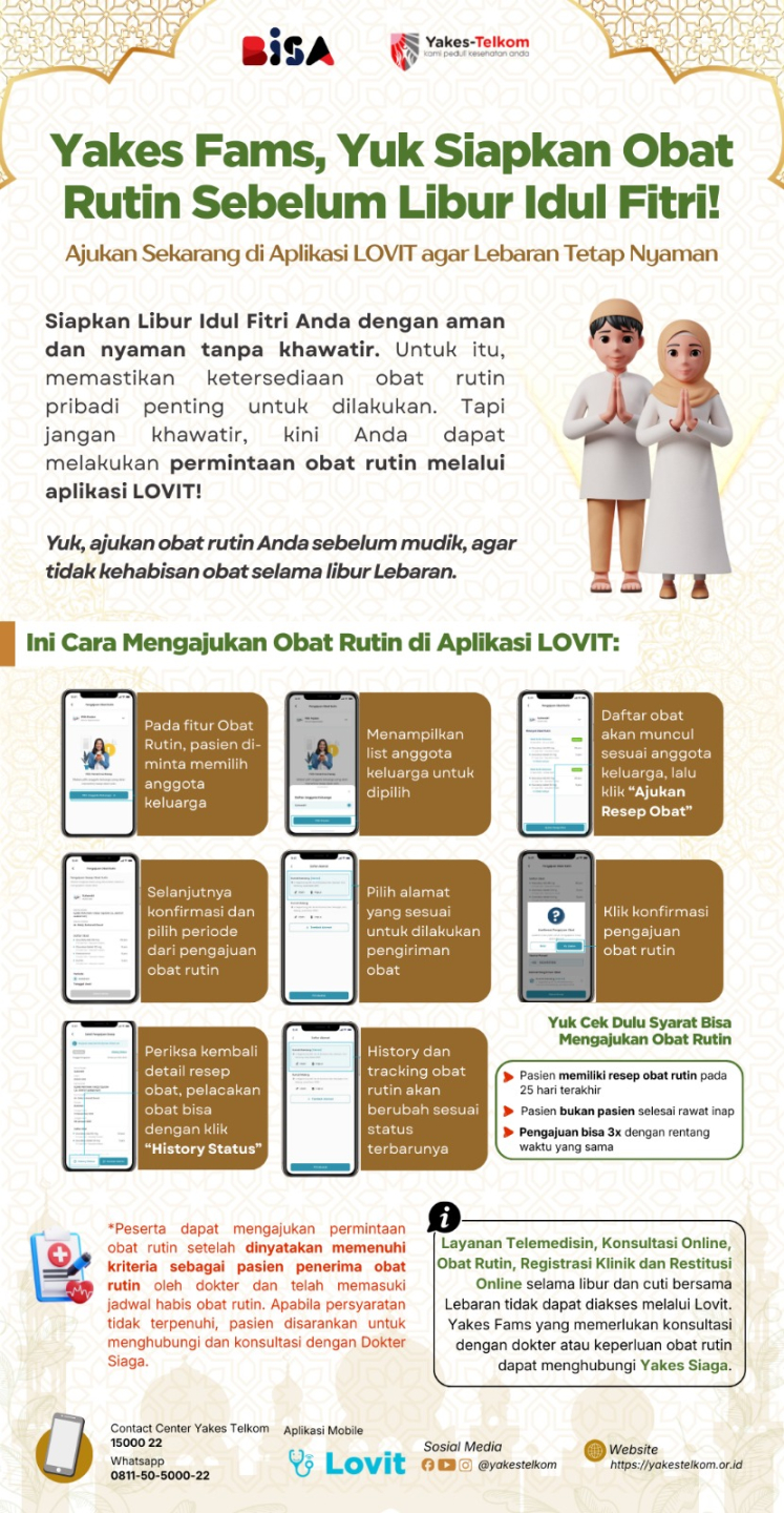 Yang terpenting, tetap tenang dan segera hubungi Yakes Siaga agar proses layanan kesehatan dapat dibantu. Rayakan liburan bersama keluarga dengan tetap menjaga kesehatan dan kesiapan layanan kesehatan.