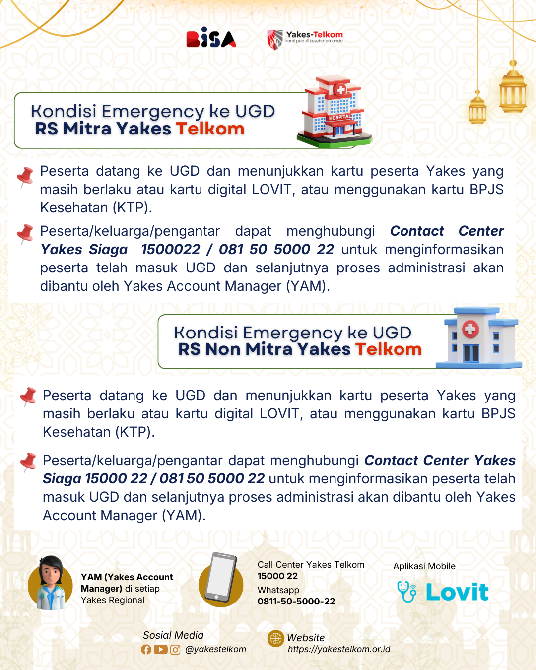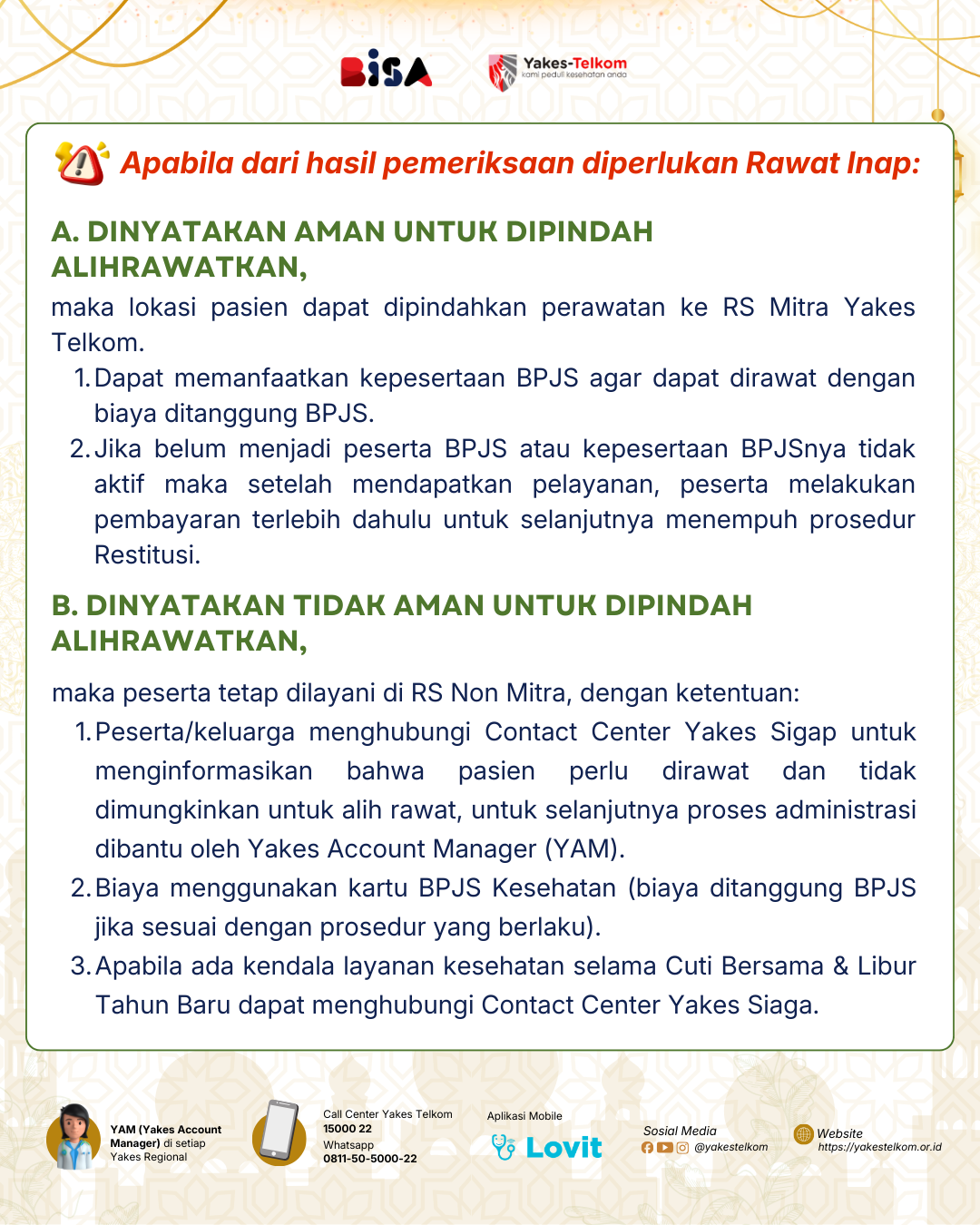 Yang terpenting, tetap tenang dan segera hubungi Yakes Siaga agar proses layanan kesehatan dapat dibantu.