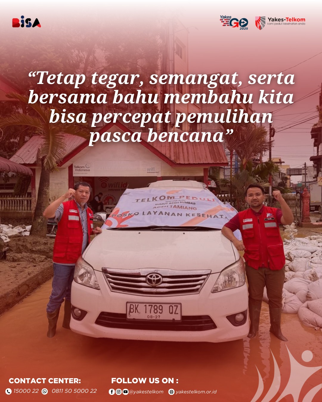Di tengah situasi yang tidak mudah, kami melihat semangat luar biasa dari masyarakat. Saling bantu, saling menguatkan, dan berusaha bangkit bersama. Yakes Telkom hadir untuk mendampingi proses itu, menghadirkan layanan kesehatan agar pemulihan bisa berjalan lebih cepat.